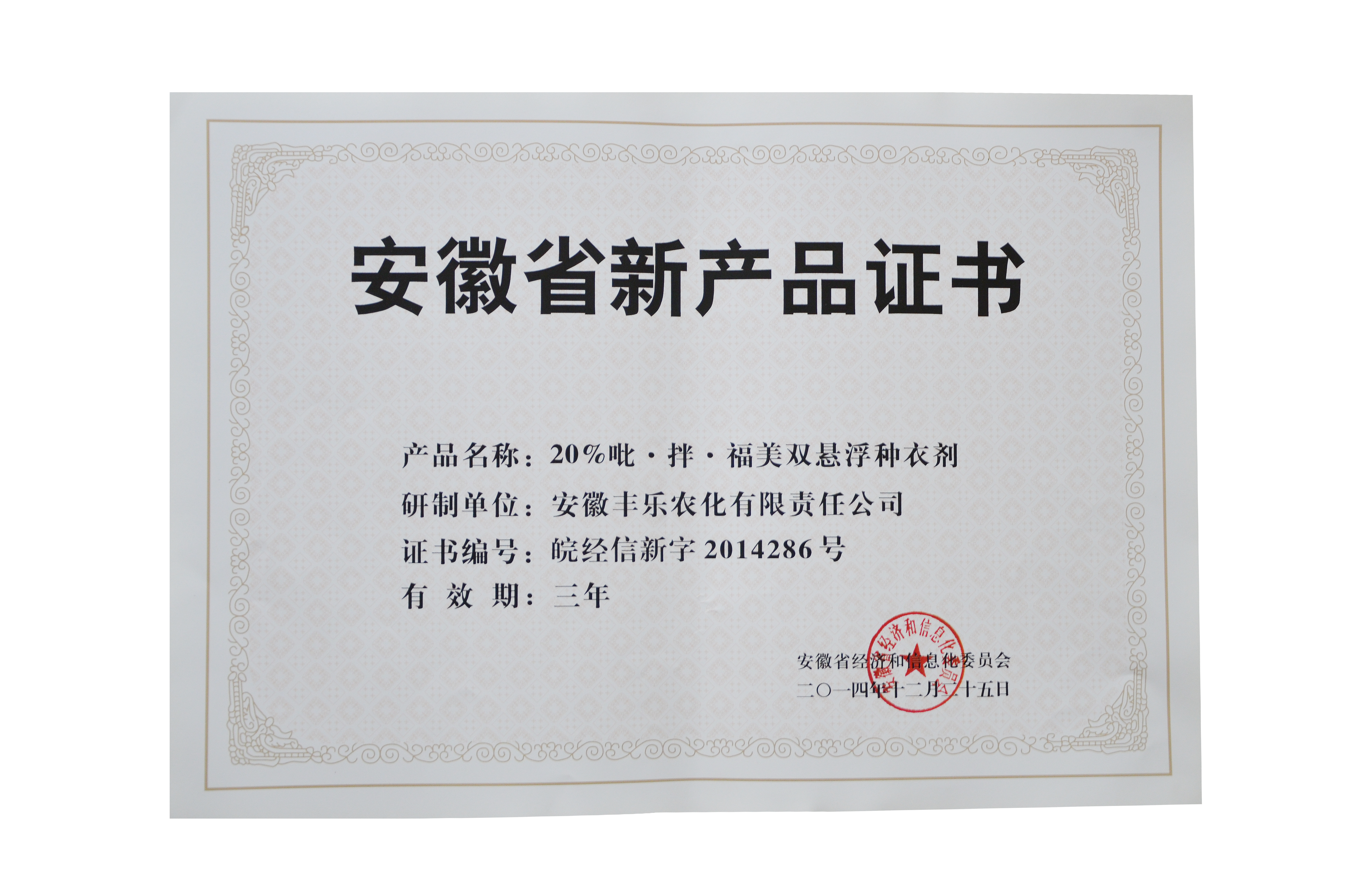 安徽省新产品-20%吡·拌·福美双悬浮种衣剂(证书)